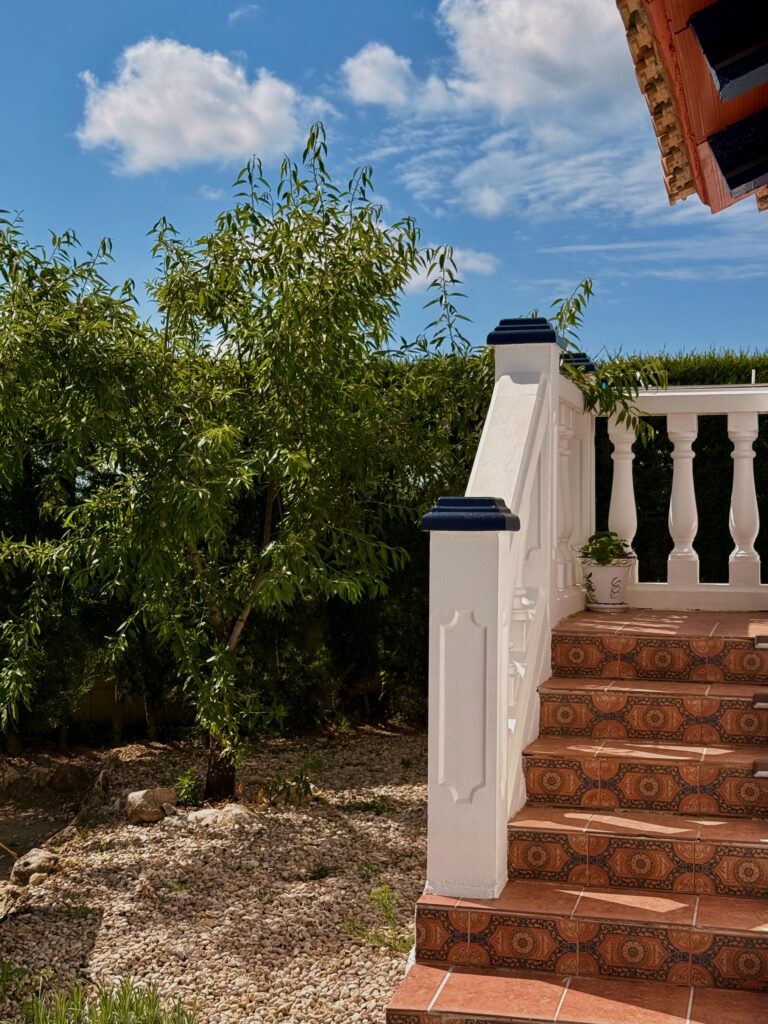 Además, ‘la Casita’ tiene su propio balcón con zona de salón, donde podrá disfrutar de una vista panorámica de la reserva natural subyacente, las plantaciones de naranjos y el mar.